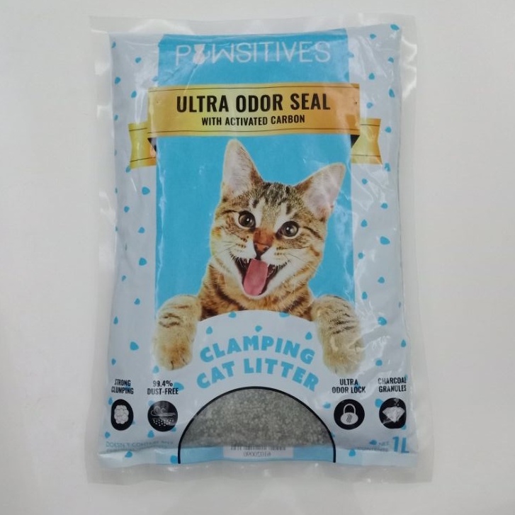 1L Pawsitives Ultra Odor Seal Clumping Cat Litter Sand Pasir Tandas Kucing Serap Bau Murah - kucing guna spec