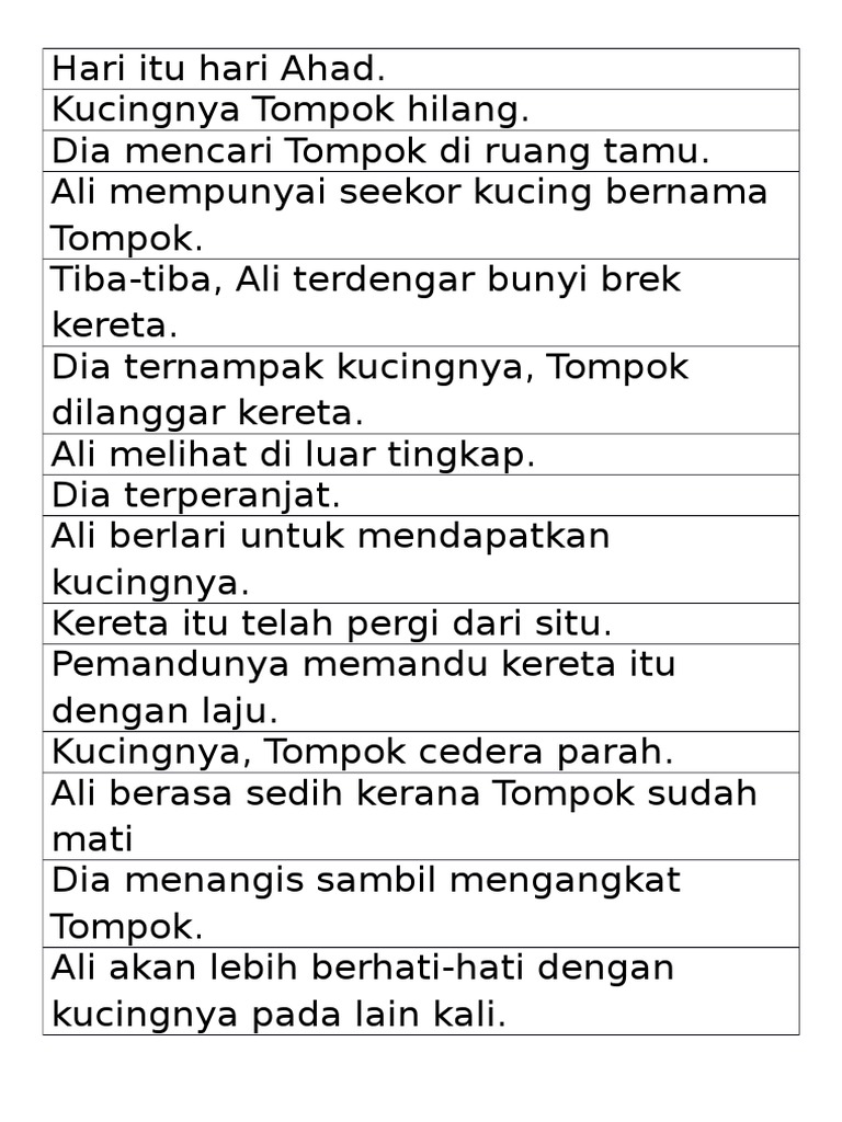 Karangan Susun Ayat (Karangan Kucing Mati PDF - kucing hilang balakong