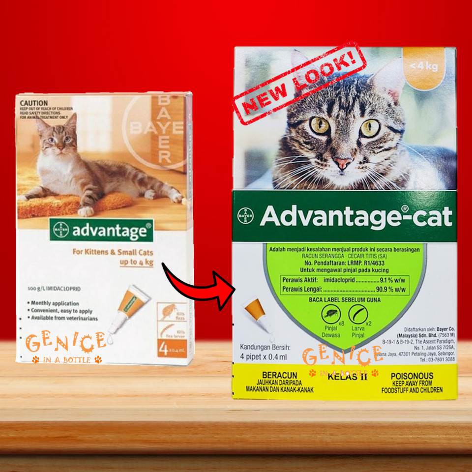 Advantage Cat 0.4ml X 4 pipettes - Cat Flea, Lice u0026 Tick Control - kucing guna spec